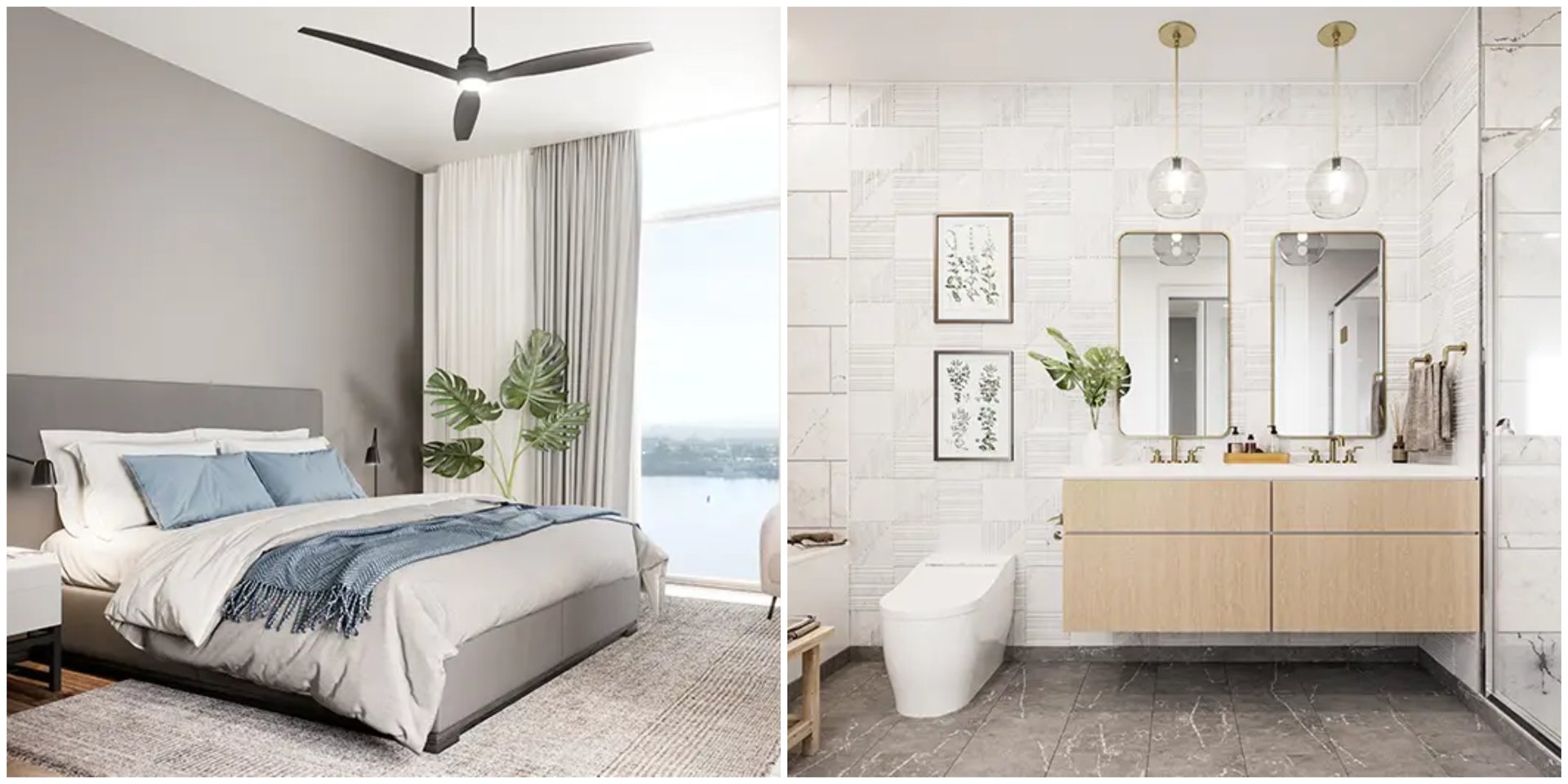 The residences at Kirkland Tower include a diverse array of floor plans, featuring open, airy interiors and seamless transitions to private terraces. Floor-to-ceiling window walls frame far-reaching river, city and landscape views while filling interiors with abundant natural light. Sophisticated design details have been highly curated by Ankrom Moisan to showcase rich patterns, textures and contrasts between warm wood and stone accents—all inspired by the natural Pacific Northwest surroundings.